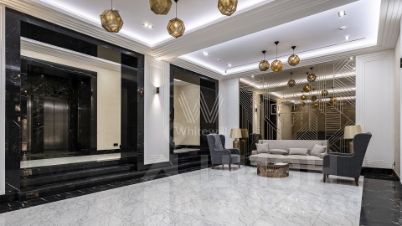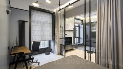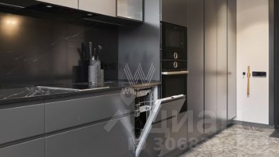 Апартаменты с отделкой расположены на 3-м этаже. Выполнен дизайнерский ремонт в стиле минимализм в сдержанных серых оттенках с использованием премиальных материалов, техника от ведущих производителей — Bosch, Samsung.