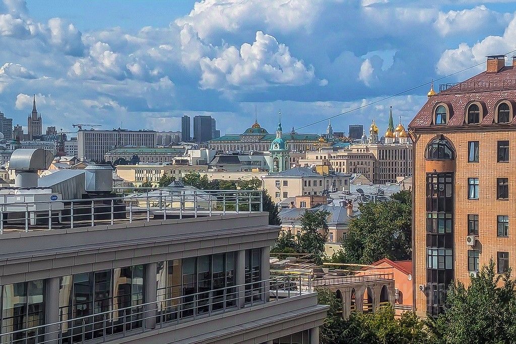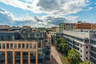 Окна на две стороны. Застекленный балкон-терраса площадью 28 кв.м, с панорамным видом на Замоскворечье и Кремль, и небольшой балкон, ориентированный во двор. Большая часть окон - панорамные, выходят на юго-запад, благодаря чему квартира очень светлая.