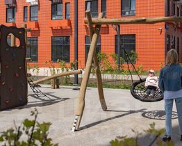 В проекте предусмотрена медленная зона для электросамокатов — с 7 утра до полуночи при въезде на территорию квартала скорость электросамокатов автоматически снижается до 15 км/ч. Артикул 976684 (Застройщик АО "Специализированный застройщик "Волжский парк"")