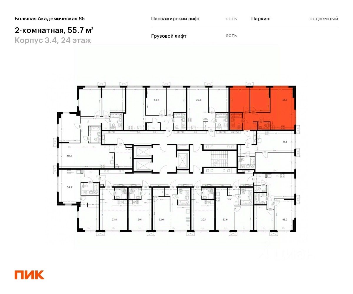 Продаётся 2-комн. квартира площадью 55,7 кв.м на 24 этаже 24 этажного дома (Корпус 3.4, Секция 7) проекта ПИК Большая Академическая 85. Светлый просторный подъезд на уровне земли, функциональная планировка, большие окна, предчистовая отделка.