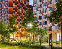 В жилой квартал входят одиннадцать корпусов, в которых есть квартиры и апартаменты. Переменная высота домов — от 11 до 24 этажей — создаёт ощущение простора и позволяет солнечному свету свободно проникать во дворы и комнаты. Фасады природных цветов украшены разными фактурными элементами, поэтому каждый дом выглядит по-особенному.