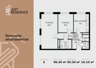Продаются 2-к апартаменты площадью 56.20 кв.м. на 6-м этаже