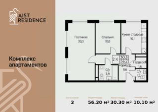Продаются 2-к апартаменты площадью 56.20 кв.м. на 10-м этаже