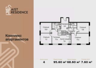 Продаются 5-к апартаменты площадью 95.60 кв.м. на 13-м этаже
