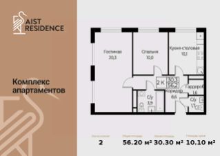 Продаются 2-к апартаменты площадью 56.20 кв.м. на 15-м этаже