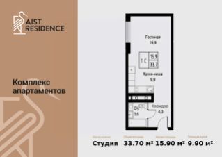 Продается студия площадью 33.70 кв.м. на 20-м этаже