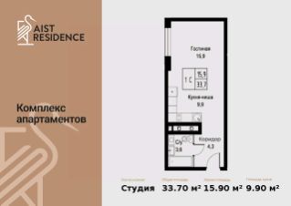 Продается студия площадью 33.70 кв.м. на 29-м этаже