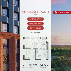 Продается 2-к квартира 54,5 кв.м. в ЖК "Семеновский парк 2" на 18-м этаже 25 этажного дома.