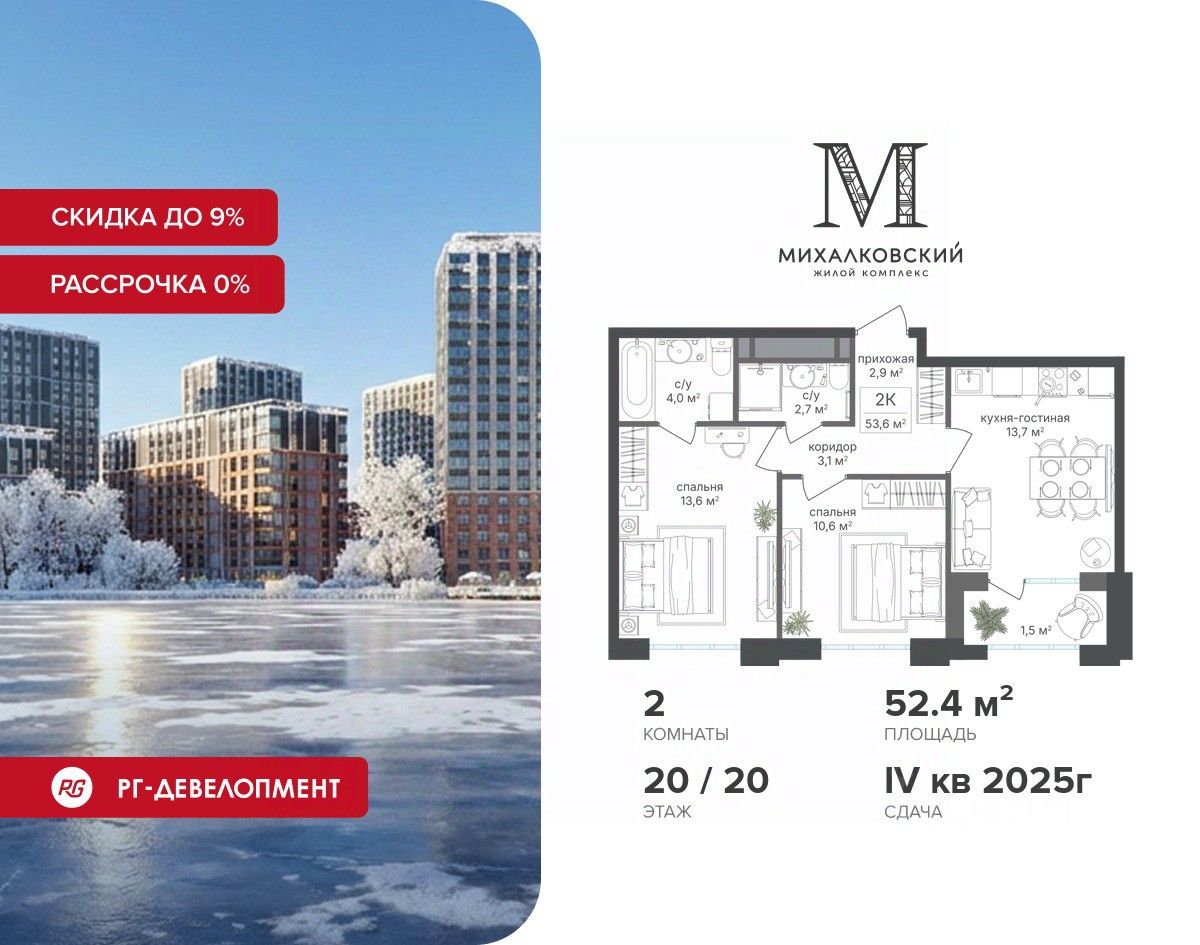 Компания "РГ-Девелопмент" предоставляет скидку на квартиры в жилом комплексе. Акция действительна до 31.03.2026 включительно. Чтобы воспользоваться предложением, необходимо подписать договор на приобретение недвижимости до 31.03.2026 включительно.