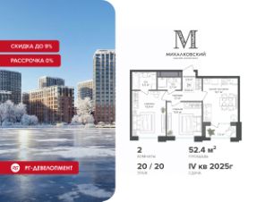 Продаётся 2-к квартира 52,4 кв.м. в ЖК "Михалковский" на 20-м этаже 20 этажного дома.