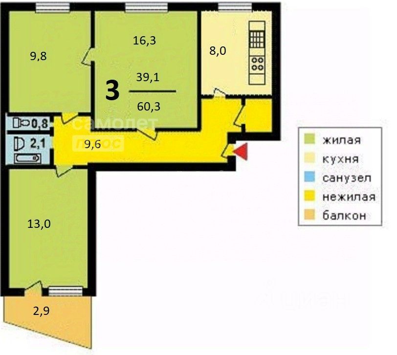3 изолированные комнаты, одна с выходом на застекленную лоджию,