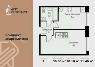 Продаются 1-к апартаменты площадью 36.80 кв.м. на 4-м этаже