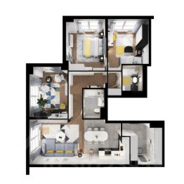 В жилой квартал входят одиннадцать корпусов, в которых есть квартиры и апартаменты. Переменная высота домов — от 11 до 24 этажей — создаёт ощущение простора и позволяет солнечному свету свободно проникать во дворы и комнаты. Фасады природных цветов украшены разными фактурными элементами, поэтому каждый дом выглядит по-особенному.