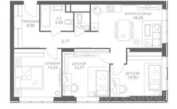 Окна на Центр и на СИТИ. Свободная планировка, потолки 3,1м
