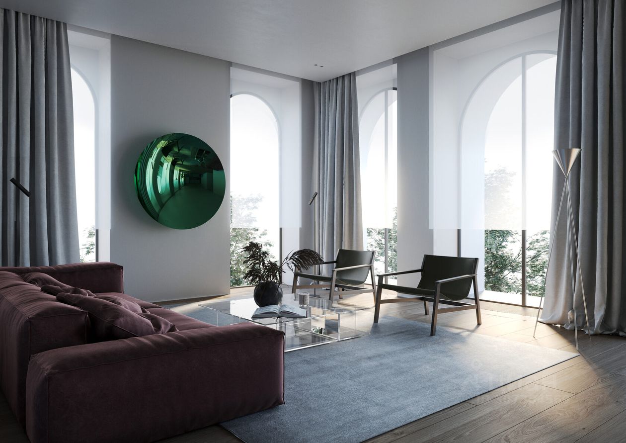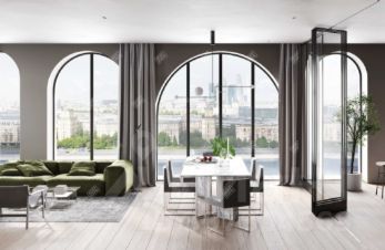 Высокие потолки и панорамные окна формируют пространства, наполненные светом.