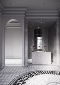 Архитектура сочетает в себе элементы римского Колизея, венецианских палаццо и московских двориков. Из окон открывается вид на набережные Москвы-реки, Кремль и храм Христа Спасителя