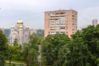 Панорамный вид из окон на парк Акведук у реки Яуза, Храм Кирилла и Мефодия, сквер Бажова.