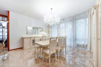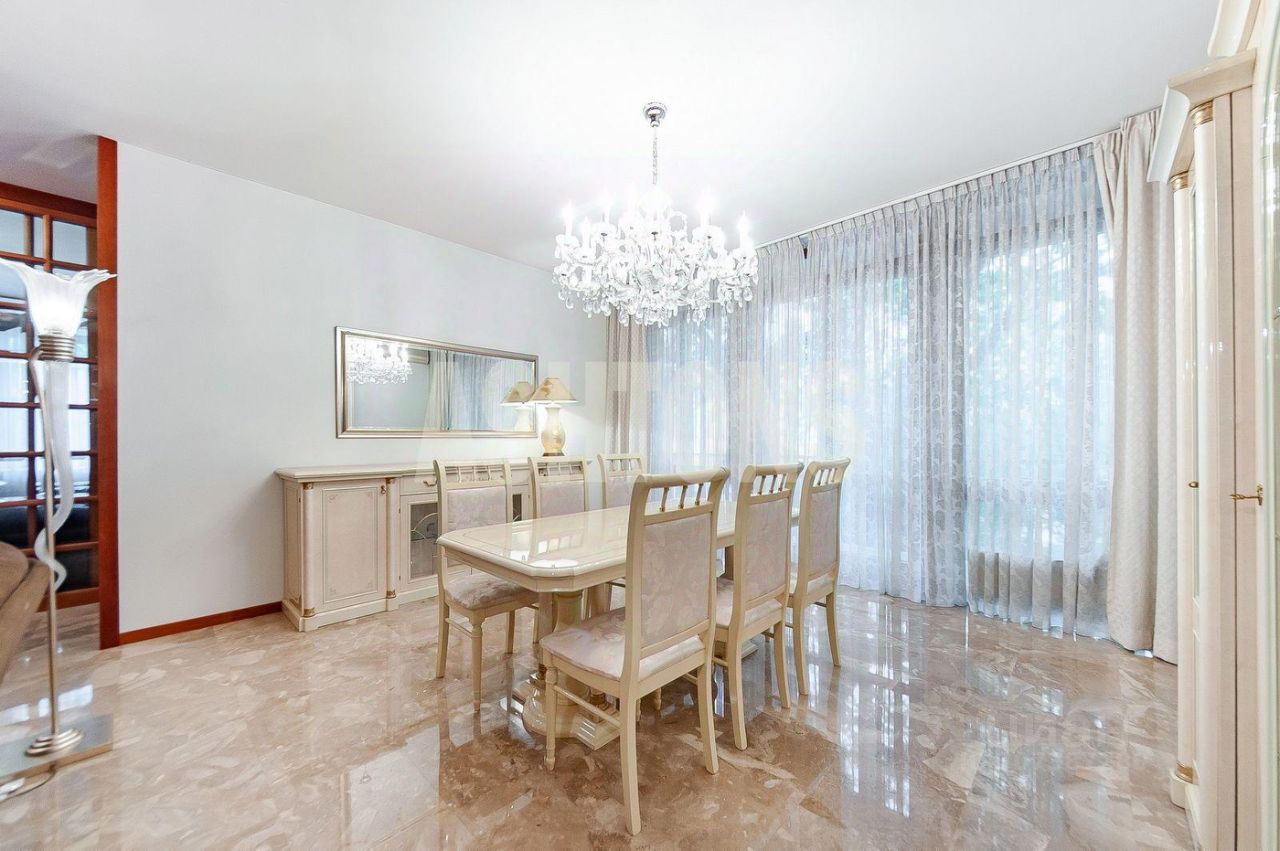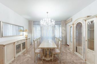 Функциональная планировка : гостиная-столовая, кухня, две спальни и комната свободного назначения, 3 ванные комнаты, холл. Кухня оснащена высококлассной бытовой техникой, включая духовой шкаф, посудомоечную машину. Интерьер выполнен в классическом стиле.