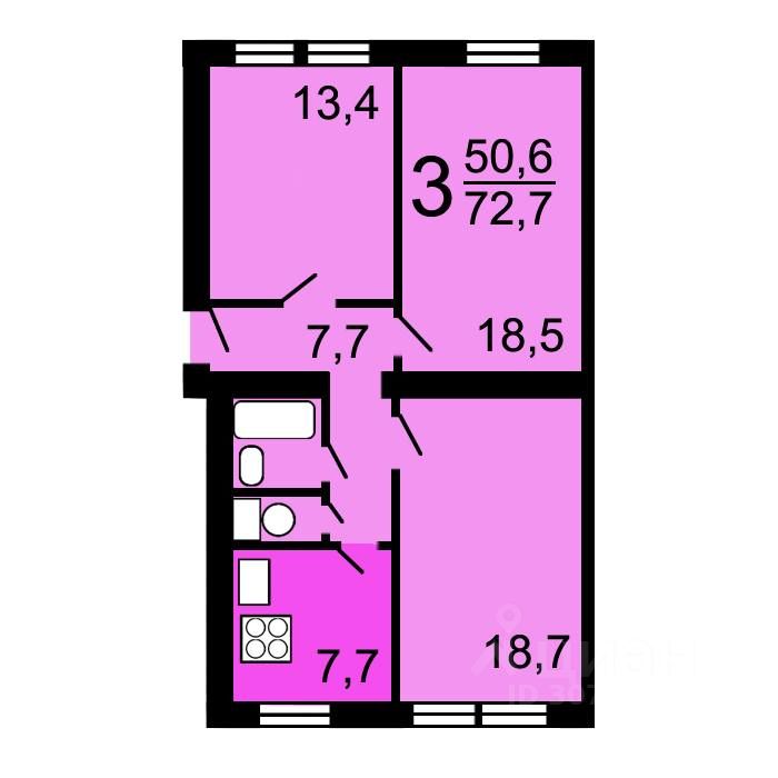Комнаты изолированы: 18 м², 15 м², 10 м² + гардеробная 4 м².
