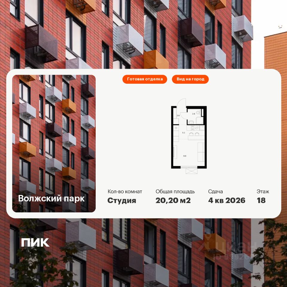 Продаётся квартира-студия площадью 20,2 кв.м на 18 этаже 24 этажного дома (Корпус 6.2, Секция 1) проекта ПИК Волжский парк. Светлый просторный подъезд на уровне земли, функциональная планировка, большие окна, c отделкой.