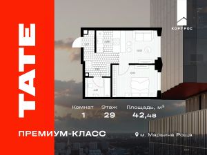 Представляем вашему вниманию прекрасную возможность стать обладателем 1-комнатной уютной и светлой квартиры 392, площадью 42.48 м², расположенной на 29 этаже в историческом районе Москвы. Квартира продаётся от застройщика ГК "КОРТРОС" одного из крупнейших девелоперов России.