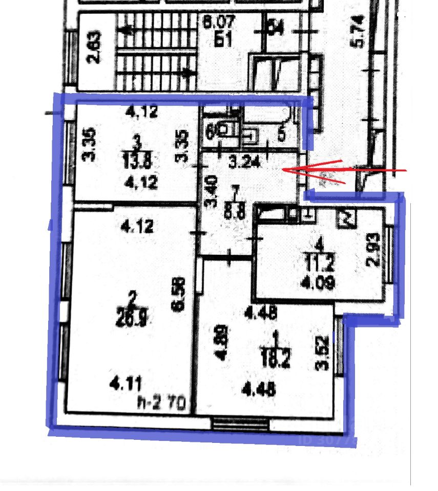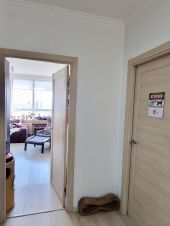 Квартира имеет три изолированные комнаты: 18 м2, 27 м2, 14 м2, просторную кухню, один раздельный сан/узел. В комнатах 18 м2 и 27 м2 по 2 окна. Установлен мощный кондиционер, встроенная кухня оборудована бытовой техникой.