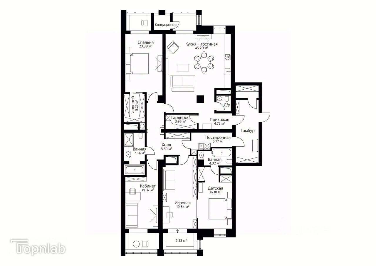 Кухонная мебель оснащена техникой "Kuppersbusch. В комнатах установлены кондиционеры.