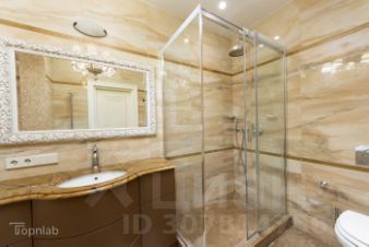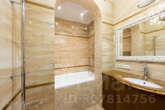 Интерьерный облик и внутреннее убранство комнат составляют единую и целостную композицию. Дизайн спроектирован в венецианском стиле с преобладанием легких пастельных тонов и природных оттенков мрамора, хлопка, слоновой кости, перламутра. Материалы подобраны высокого качества, натуральные. На стенах использована венецианская штукатурка, украшены картинами и зеркалами с резными рамками. Напольное покрытие из мрамора с подогревом, а в гостиной и жилых комнатах уложен дубовый паркет.