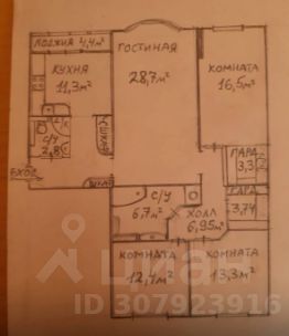 Кухня - 11,3 кВ м + лоджия - 4,4 кВ м