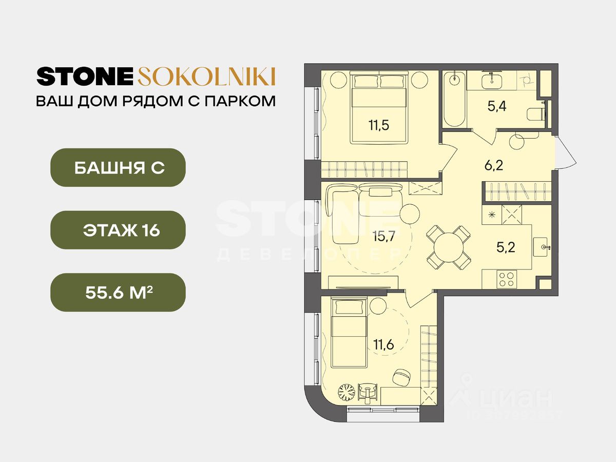 Старт продаж квартир в ЖК STONE SOKOLNIKI от девелопера STONE. В продаже просторная двуспальная квартира с кухней-гостиной и двумя спальнями для реализации любого дизайн-решения, идеально подходящая молодым парам, которые только планируют пополнение, а также небольшим семьям, где малыш уже подрастает. Современная архитектура проекта органично вписана в городскую среду. Концепция проекта разработана архитектурным бюро WALL Проект состоит из трех разновысотных башен высотой в 33, 28 и 24 этажа с чистой геометрией и увеличенной площадью остекления, которая позволит насладиться городской панорамой и видами на парк "Сокольники". Транспортная доступность - 10 мин. пешком до метро и БКЛ "Сокольники" и "Электрозаводская" - 12 мин. пешком до парка Сокольники - 10 мин. пешком до станции МЦД-3 "Митьково", которая позволит комфортно добираться в центр города и за его пределы Инфраструктура: В каждой входной группе предусмотрены помещения для временного хранения велосипедов, лапомойка, гостевой санузел, а также комната матери и ребенка. А колясочные появятся на каждом этаже - ведь это самое удобное решение для детей и их родителей. Планировочные решения: Планировки квартир в STONE Sokolniki создавались с учетом разнообразия современных сценариев жизни в городе. В проекте предусмотрены просторные кухни-гостиные, изолированные спальни с мастер-блоком, планировки для семей со взрослыми детьми, с двумя детьми разных возрастов. Благодаря грамотному зонированию квартир можно насладиться и временем с семьей, и уединением или, наоборот, устроить вечеринку вместе с друзьями. - Квартиры от 28 до 135 кв. м. Детский сад во дворе дома: Девелопер STONE осуществляет самостоятельный поиск оператора для детского сада, так как курирует наполнение проекта. На этапе финальной готовности будет выбран лучший оператор, отвечающий запросам качества и цены. Во всех своих проектах девелопер берет на себя ответственность за сдачу части помещений. Удобное хранение: В проекте STONE Sokolniki предусмотрена максимальная обеспеченность кладовыми. Хранения велосипедов в подземном паркинге возможно в зимний период, а летом будет организовано временное хранение на улице. Колясочные есть на каждом этаже всех трех жилых башен. - Колясочные на этаже - Кладовые для хранения Безопасная собственная территория дома, сим и паркинг: Внутри двора комфортно перемещаться пешком, все въезды в паркинг организованы по внешнему периметру. Велосипеды, самокаты и электросамокаты, детские беговелы и коляски - в приоритете, для всех колесных видов транспорта продуманы удобные маршруты движения и варианты хранения в разные сезоны. STONE - девелопер коммерческой и жилой недвижимости классов бизнес и премиум в Москве с 18-летним опытом. С 2022 года занимает лидирующую позицию на офисном рынке (рейтинг РБК). Сегодня в портфеле девелопера представлено 2,5 млн кв. м построенных, строящихся и проектируемых объектов, из которых более 850 тыс. кв. м находятся в стадии строительства. Компания имеет самый