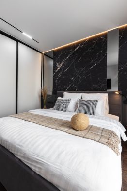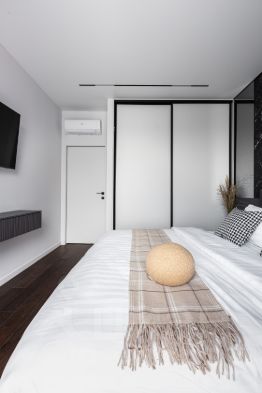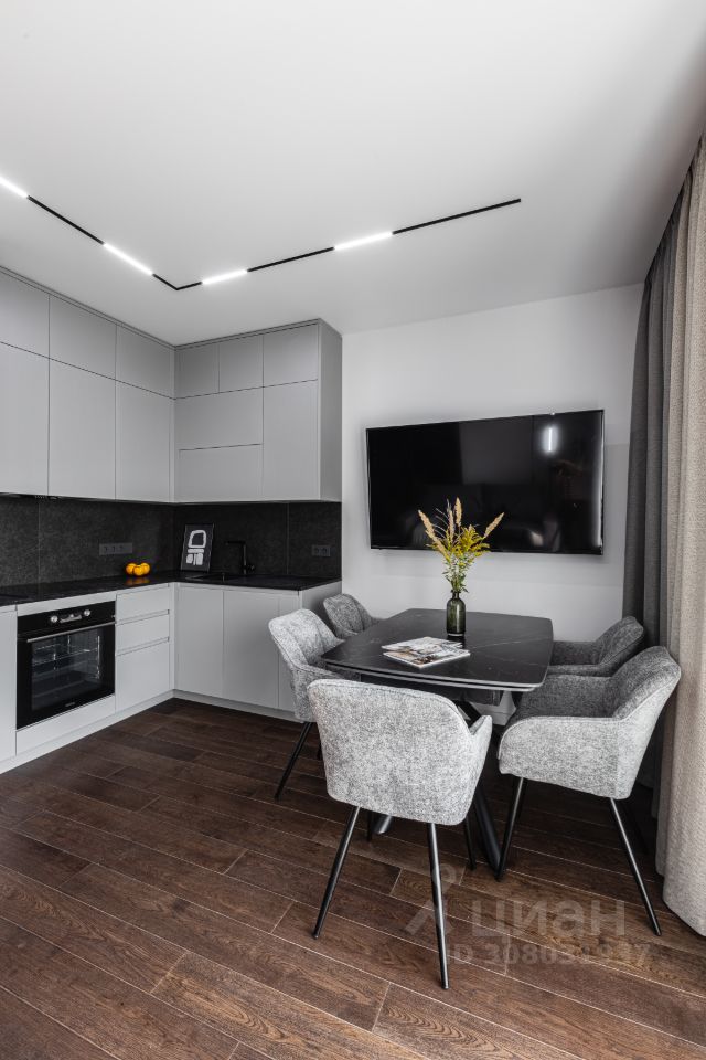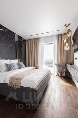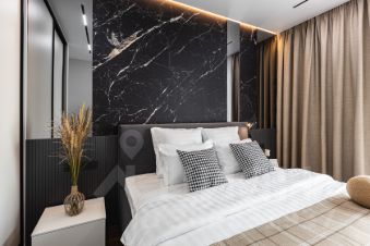 Две раздельных спальни, кухня гостиная, два санузла, встроенные шкафы.