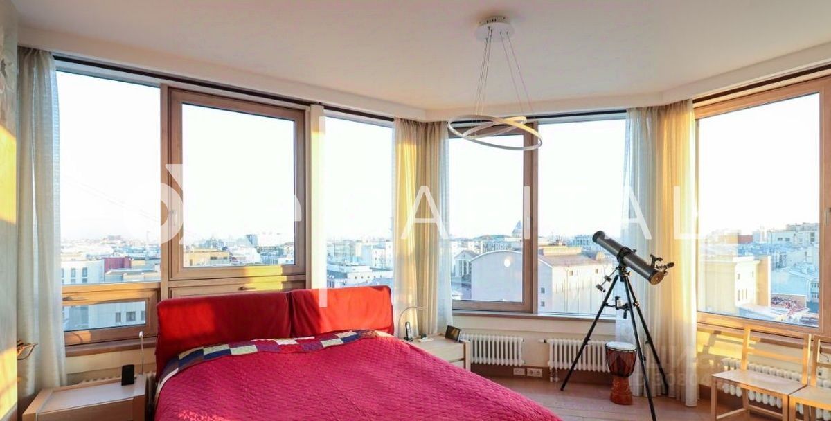 Лот f38295 Предлагается квартира общей площадью 212 м² расположена на 10-м и 11-м этажах. Окна квартиры ориентированы на 3 стороны света: северо-запад, юго-запад и юг.