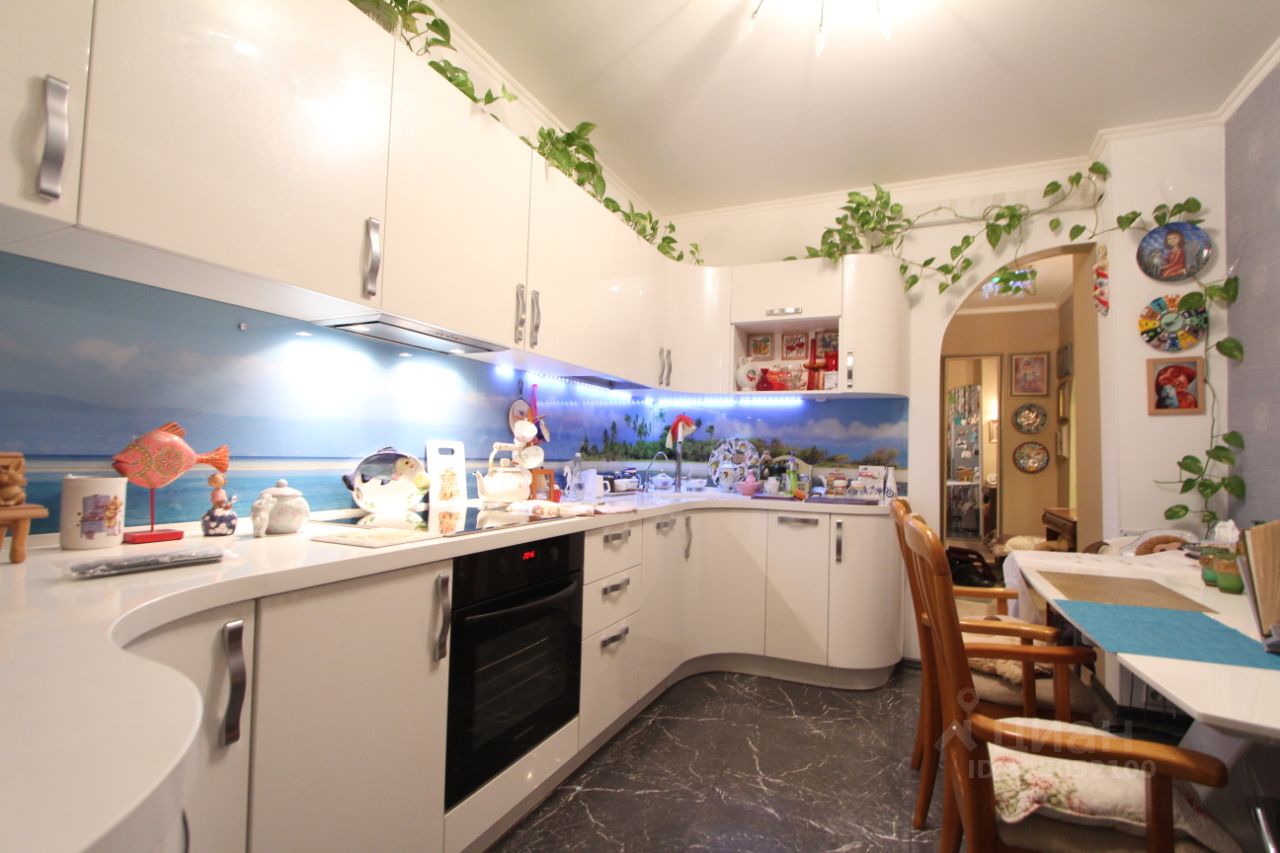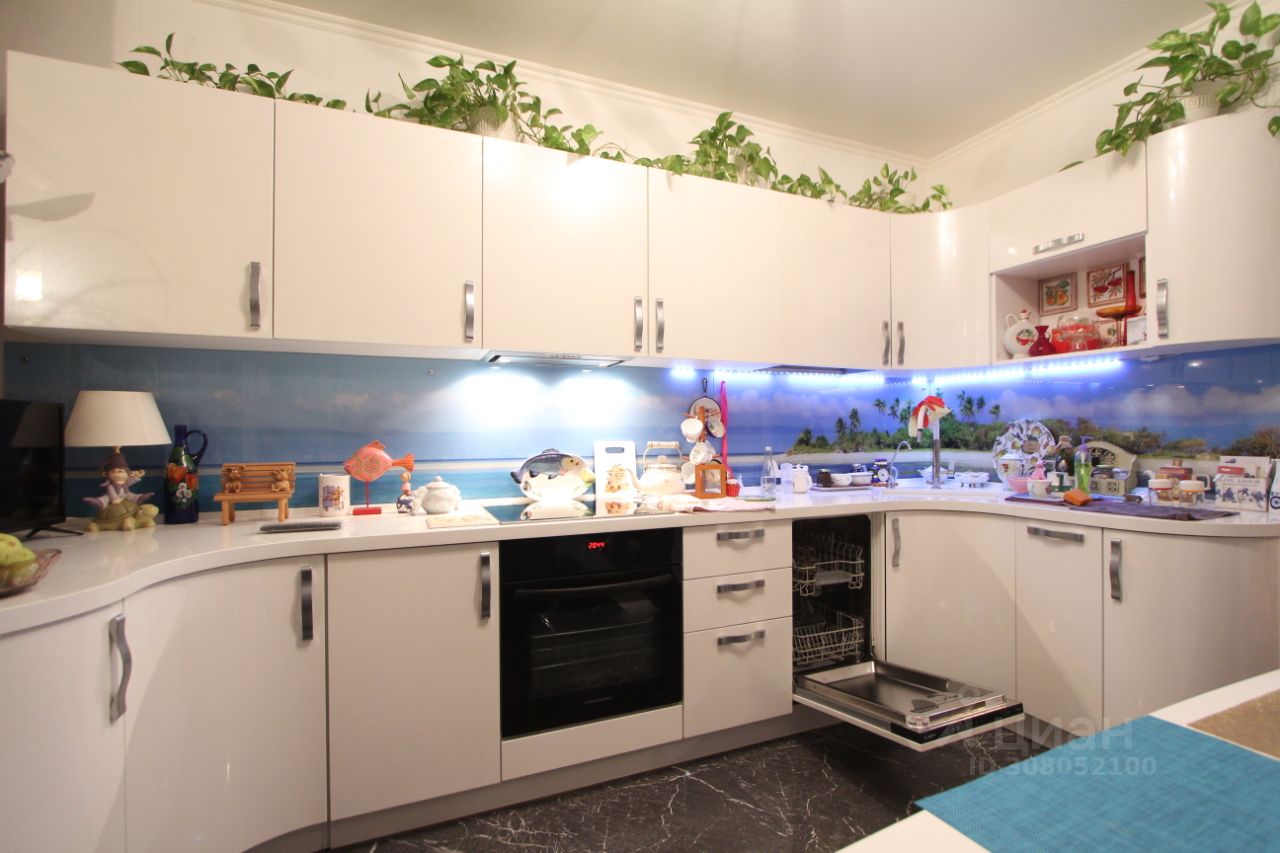 Планировка квартиры представляет собой: три изолированных комнаты, просторная кухня, два санузла, гардеробная, две застекленных лоджии. Кухня со встроенной бытовой техникой. Теплый пол в кухне и на лоджии, которая в спальне. Установлен водонагреватель. Высота потолка 2,7 м. Окна выходят на две стороны.