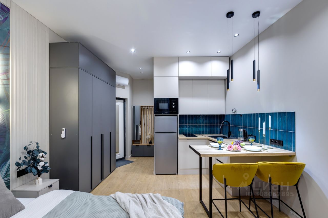Студия обставлена необходимой мебелью и бытовой техникой, что позволяет сразу же заселиться и проживать или сдавать ее в аренду и получать пассивный доход. Есть собственная управляющая компания, готовая организовать работу с посуточно арендой под ключ. Окупаемость при этой стратегии 8 лет