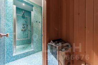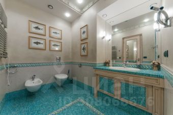 - В детском санузле, оформленном в морском стиле, есть сауна