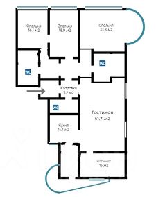 - Две смежные комнаты (можно поселить двух детей одного пола или ребенка с няней), возможно также изолировать комнаты.