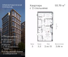 Квартира на 2 этаже в жилом комплексе премиум-класса "Преображенская площадь". Общая площадь: 95.79 кв.м.