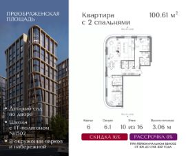 Квартира на 10 этаже в жилом комплексе премиум-класса "Преображенская площадь". Общая площадь: 100.61 кв.м.
