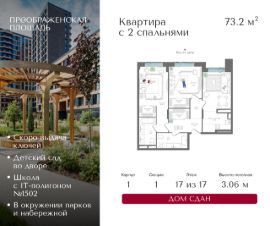 Квартира на 17 этаже в жилом комплексе премиум-класса "Преображенская площадь". Общая площадь: 73.2 кв.м.
