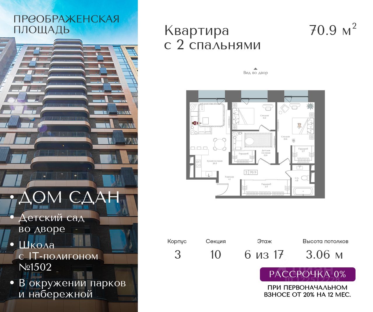 Рассрочка 0% от застройщика. Первоначальный взнос от 20%. Предложение действует до 31 января 2026 года
