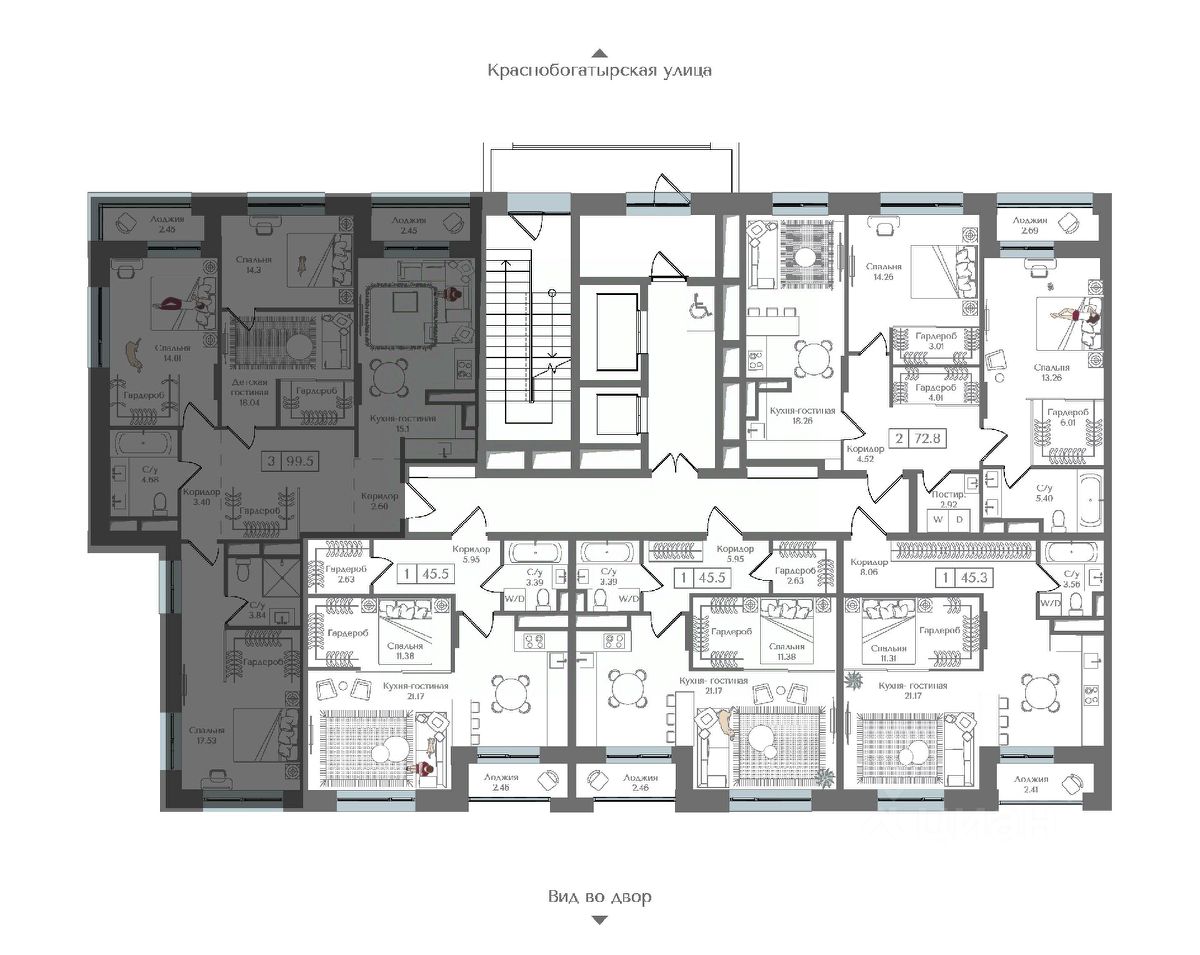 Квартира на 15 этаже в жилом комплексе премиум-класса "Преображенская площадь". Общая площадь: 99.5 кв.м.