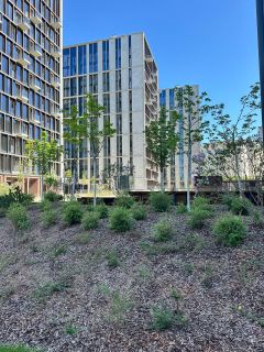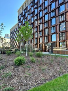 Закрытый безопасный двор Victory Garden с тщательно проработанным ландшафтным дизайном в едином ансамбле с природой, где есть места для уединённых размышлений, неспешных прогулок, весёлых игр с детьми и своих домашних питомцев.