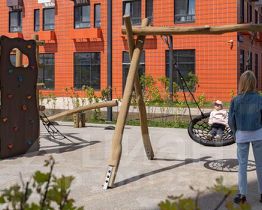 В проекте предусмотрена медленная зона для электросамокатов — с 7 утра до полуночи при въезде на территорию квартала скорость электросамокатов автоматически снижается до 15 км/ч. Артикул 976480 (Застройщик АО "Специализированный застройщик "Волжский парк"")