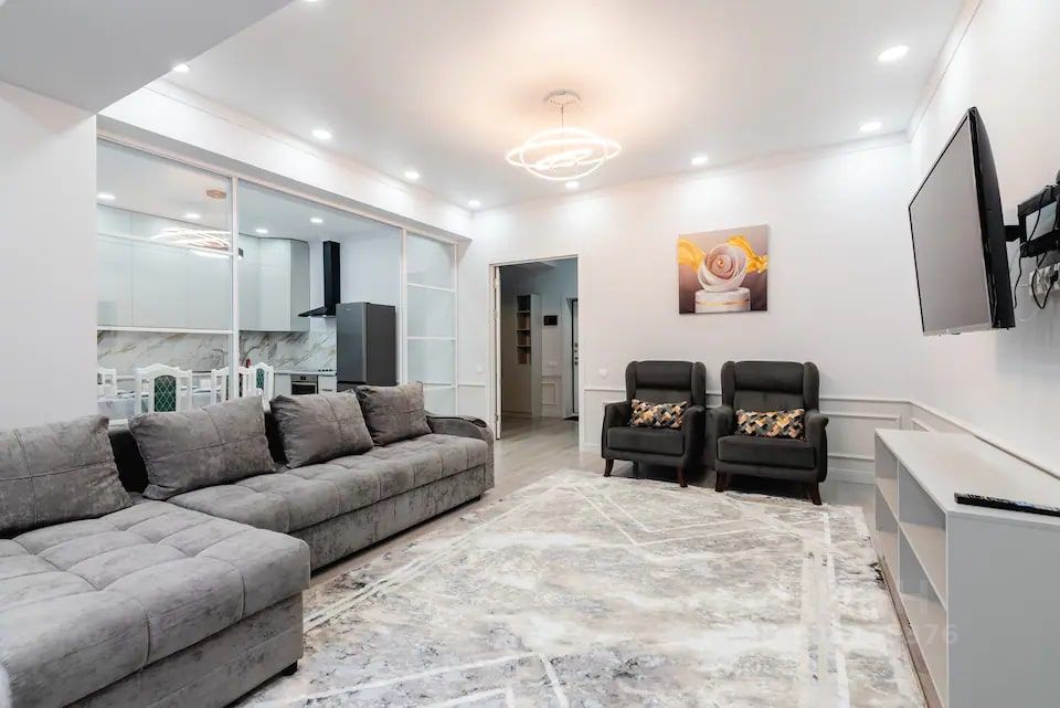 Продается просторная квартира в элитном ЖК Суббота. Общая площадь 81,9 кв.м. Перепланировка согласована. По функциональной планировке: Одна большая спальня, 2 совмещенных С/У, большая кухня-гостиная. В квартире выполнен дизайнерский ремонт, мебель и техника остается.