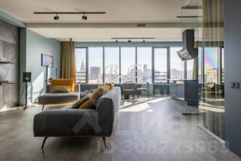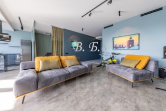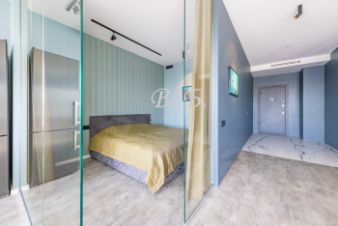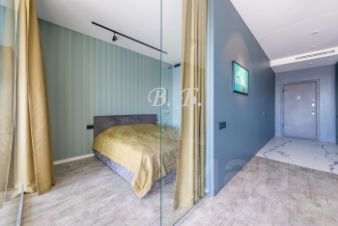 Современным дизайном и продуманной планировкой: функциональная кухня-гостиная с бытовой техникой и мебелью известных европейских брендов, комфортабельная спальня отделена стеклянной звукоизоляционной перегородкой, и шторами Bleckout