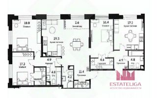 Потолки 4 метра и просторная объедененная планировка 140.4 метра квадратных, делают квартиру привлекательной для покупки семейной пары!