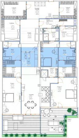 и гардеробной с выходом на террасу, спальня с санузлом и душевой, постирочная,