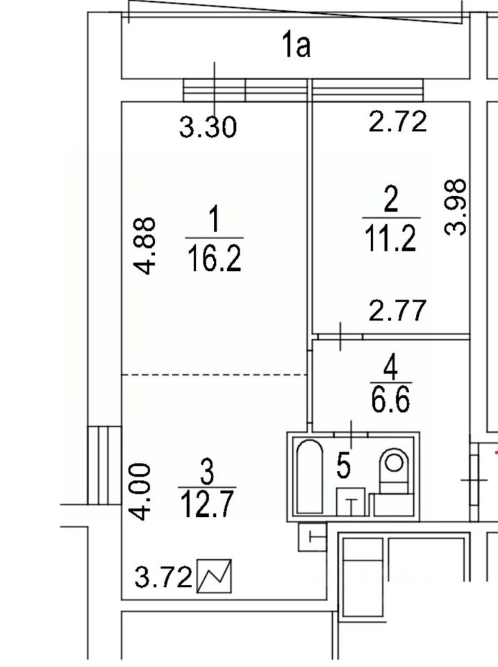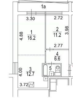 Общая площадь: 51.80 м.кв., Жилая площадь: 27.10 м.кв., Площадь кухни: 13.00 м.кв., Кухня-гостинная, Квартира переделана из 1-комнатной в 2-комнатную