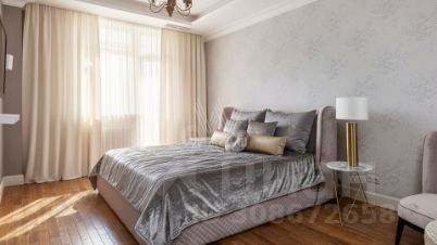 Видовая квартира с тремя спальнями общей площадью 187 м² в комплексе бизнес-класса "Гранд-парк" на 18-м этаже.