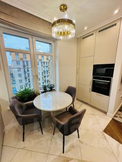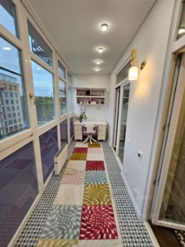 В квартире заменено все остекление от застройщика. При ремонте использованы иностранные дорогостоящие отделочные материалы (Grespania, Naxos и д.р.) и техника (Neff). Имеется шумоизоляция, теплые полы. Cантехника производства Португалии и Германии. Межкомнатные двери высотой 2.3 м производства Perfecto Porte. В данной квартире все продумано для комфортного проживания большой семьи. В случае необходимости комнату мальчика можно превратить в кабинет для делового человека.